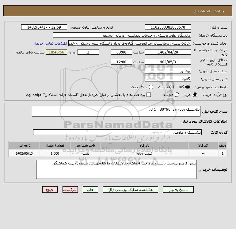 شرح کلی نیاز: پلاستیک زباله زرد 90*80 1 تن
