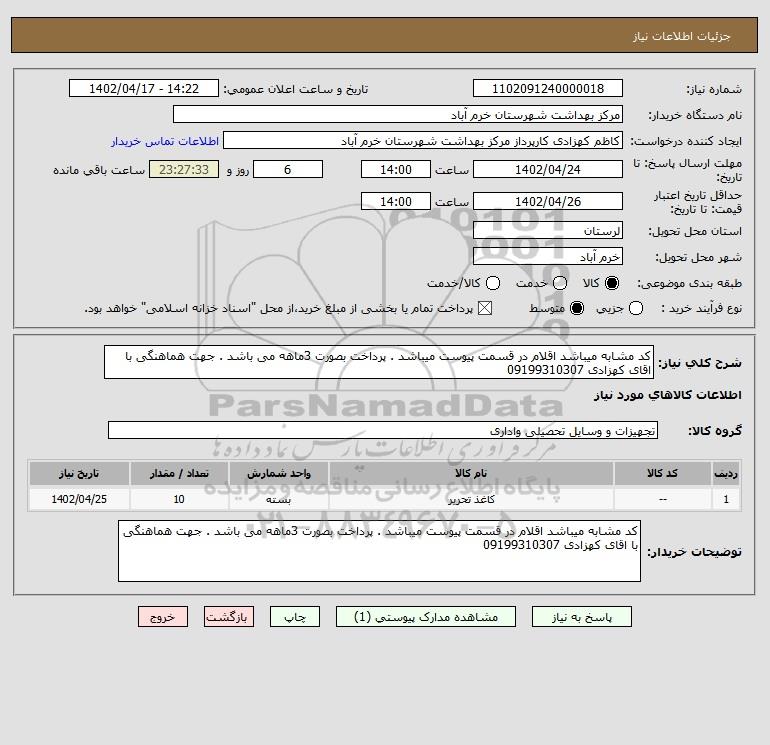 نام دستگاه خریدار:مرکز بهداشت شهرستان خرم آباد