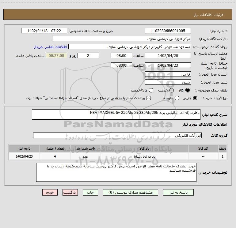 نام دستگاه خریدار:مرکز اموزشی درمانی نمازی