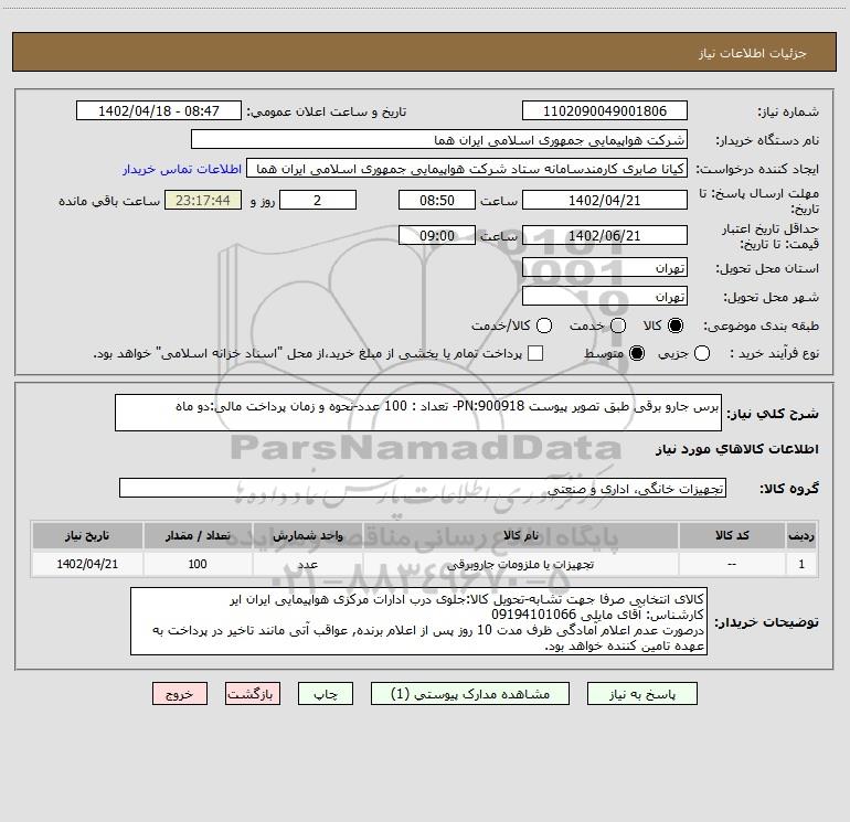 نام دستگاه خریدار:شرکت هواپیمایی جمهوری اسلامی ایران هما