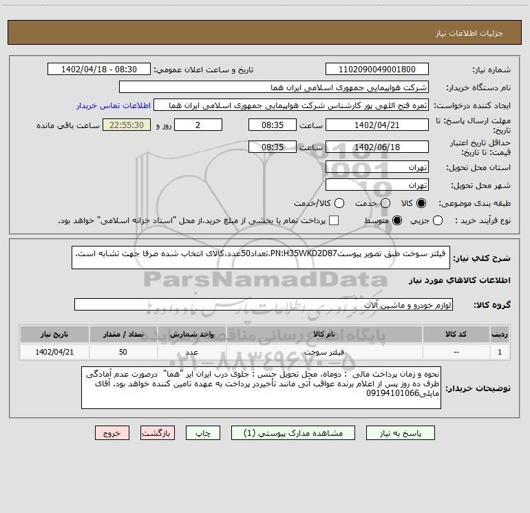 نام دستگاه خریدار:شرکت هواپیمایی جمهوری اسلامی ایران هما