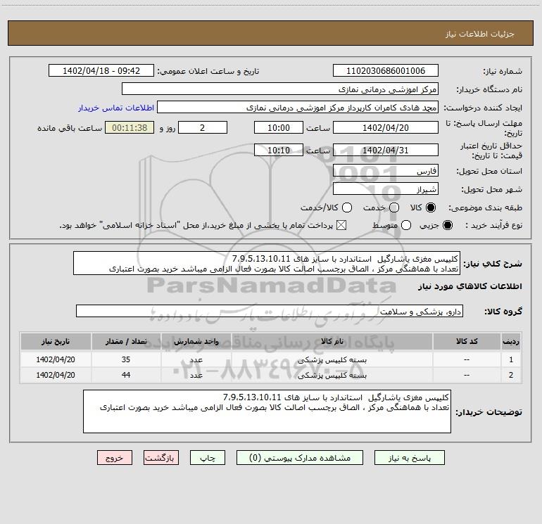نام دستگاه خریدار:مرکز اموزشی درمانی نمازی