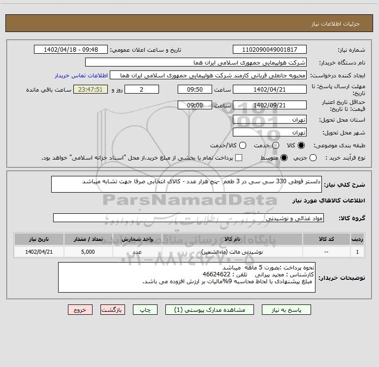 نام دستگاه خریدار:شرکت هواپیمایی جمهوری اسلامی ایران هما