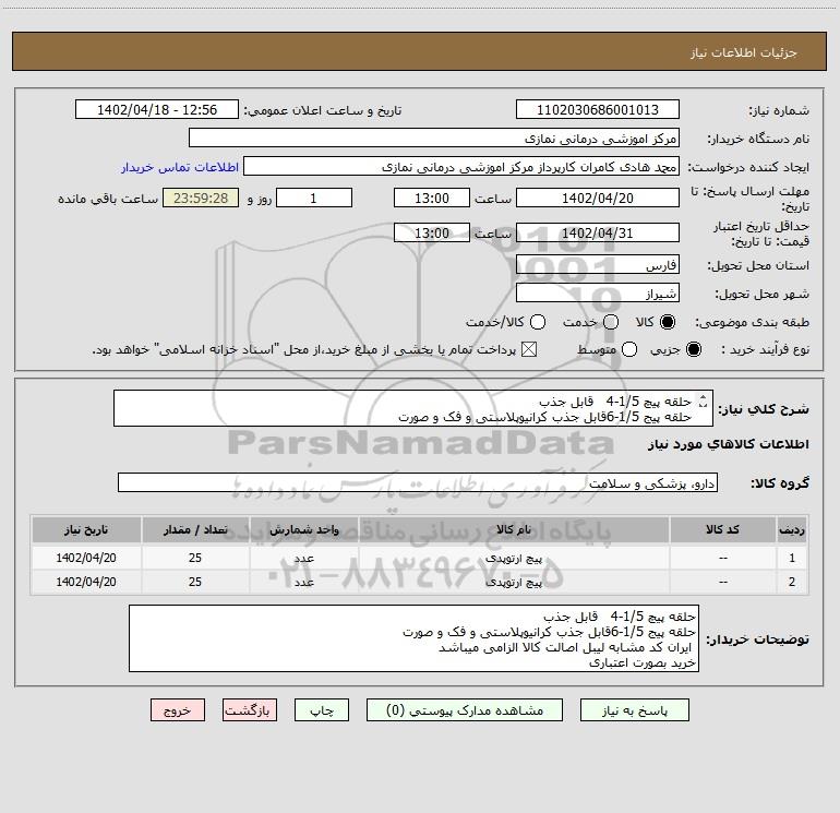 نام دستگاه خریدار:مرکز اموزشی درمانی نمازی