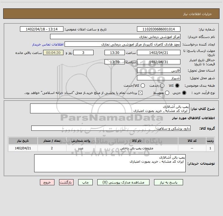 نام دستگاه خریدار:مرکز اموزشی درمانی نمازی