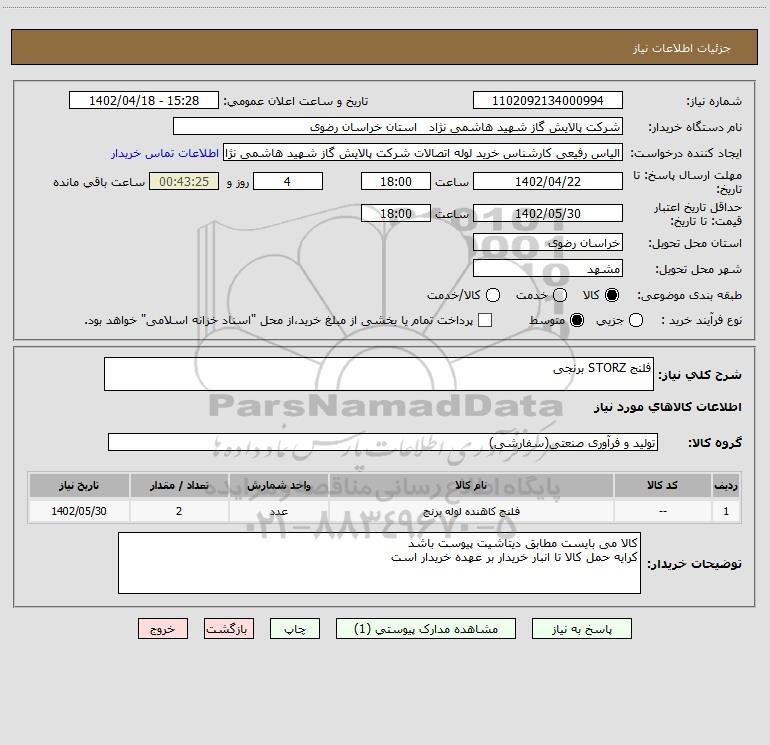 نام دستگاه خریدار:شرکت پالایش گاز شهید هاشمی نژاد استان خراسان رضوی