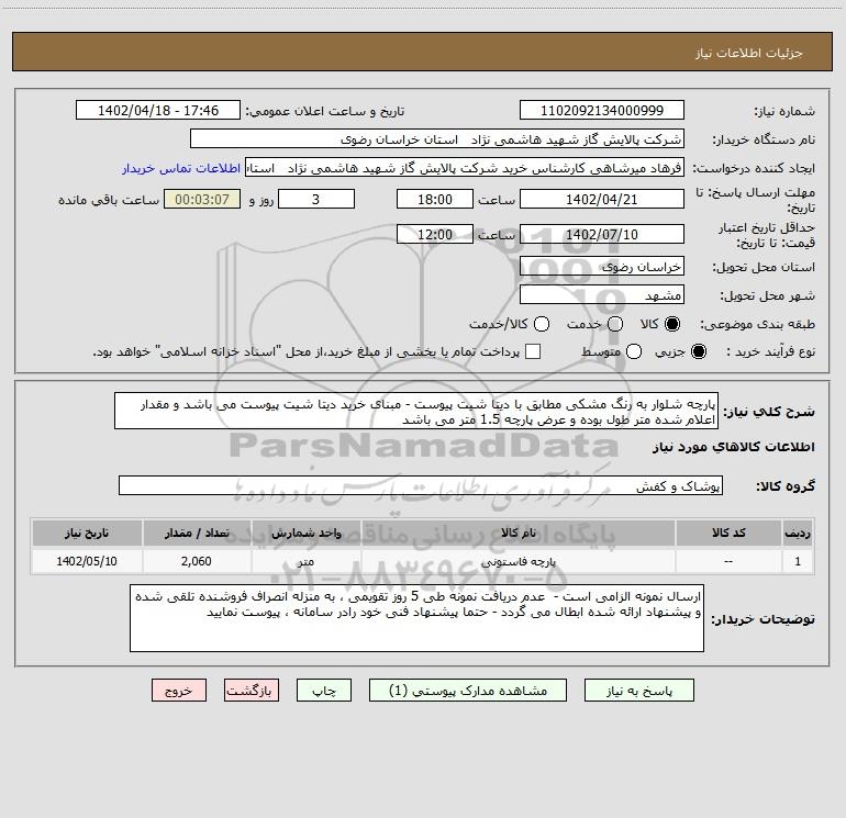 نام دستگاه خریدار:شرکت پالایش گاز شهید هاشمی نژاد استان خراسان رضوی
