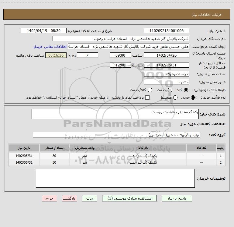 نام دستگاه خریدار:شرکت پالایش گاز شهید هاشمی نژاد استان خراسان رضوی