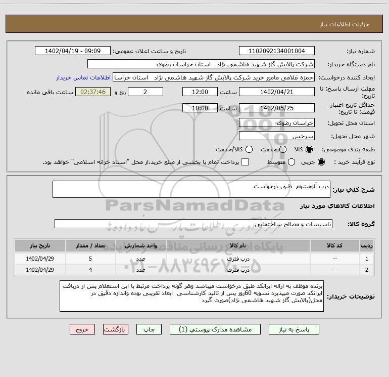 نام دستگاه خریدار:شرکت پالایش گاز شهید هاشمی نژاد استان خراسان رضوی