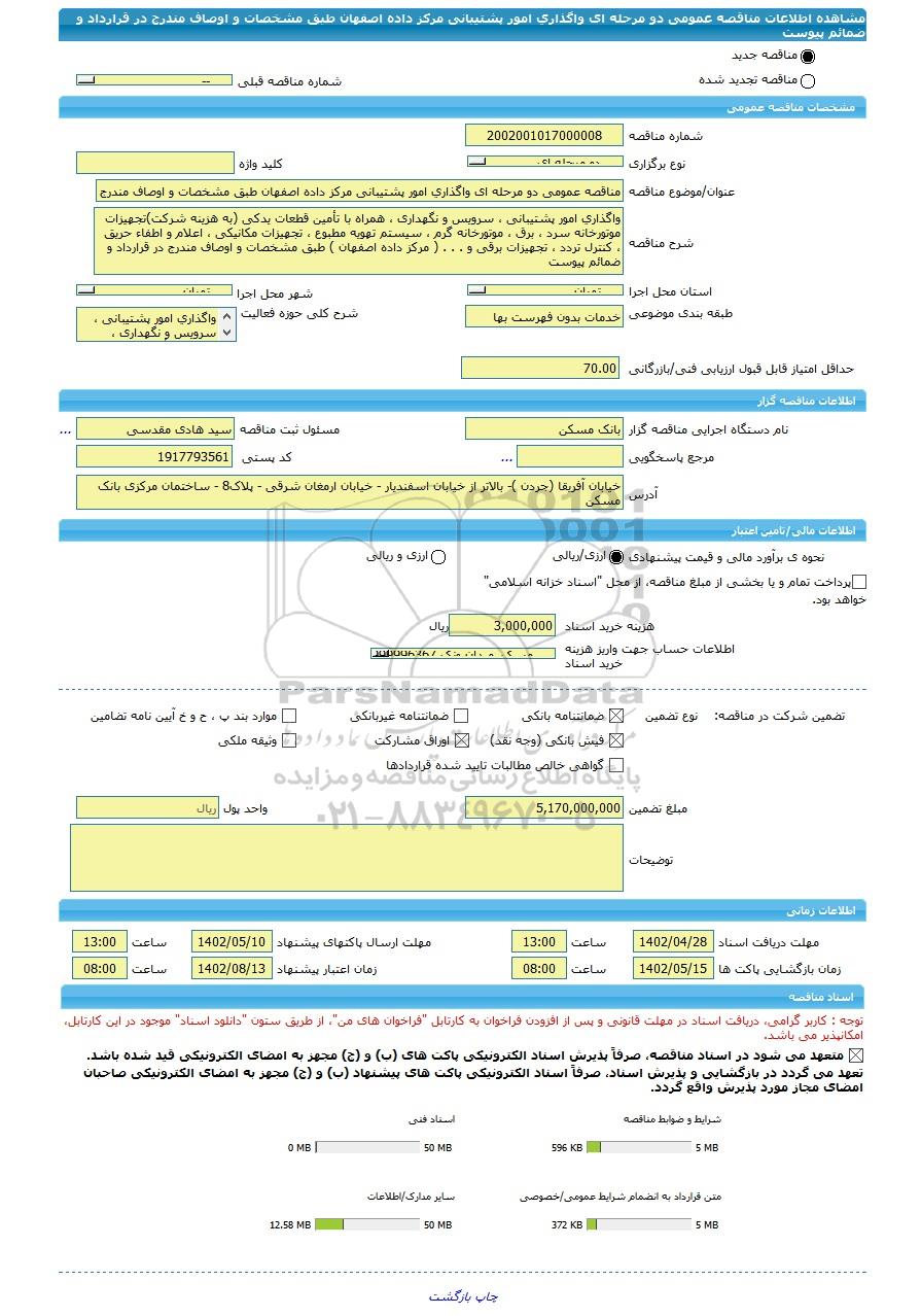 مبلغ تضمین | 5,170,000,000 | واحد پول | ریال |