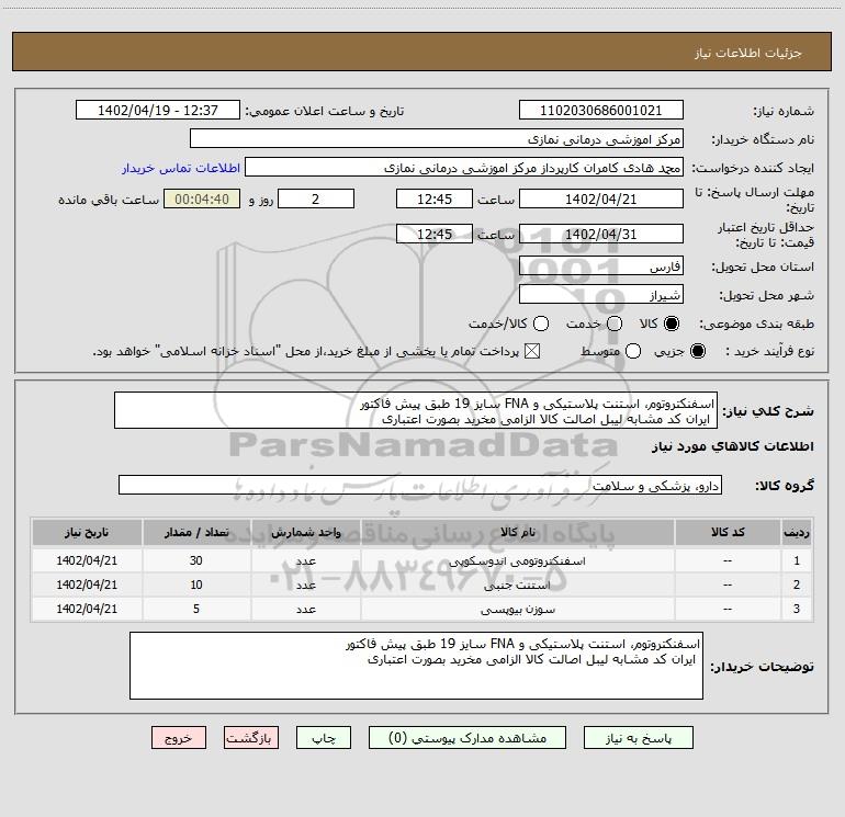 نام دستگاه خریدار:مرکز اموزشی درمانی نمازی