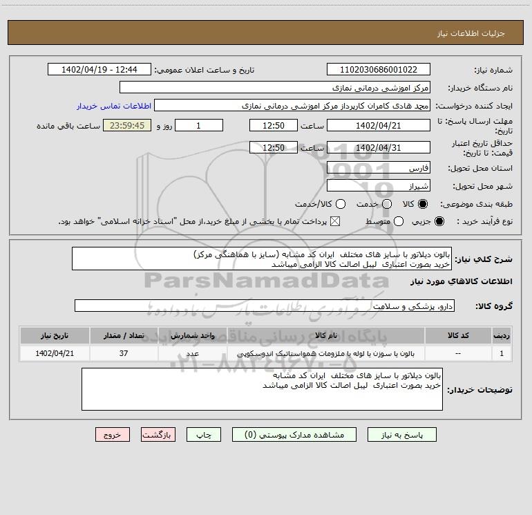 نام دستگاه خریدار:مرکز اموزشی درمانی نمازی