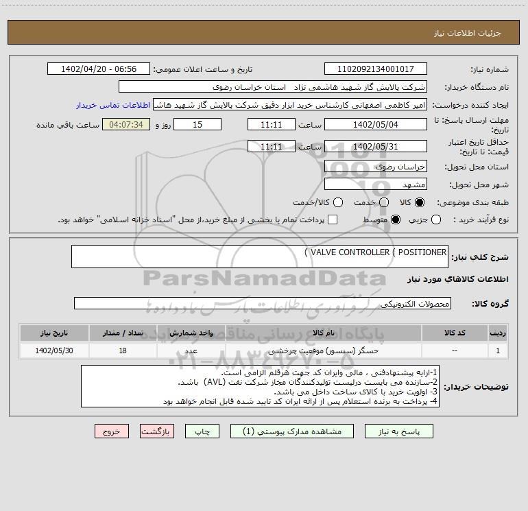 استعلام VALVE CONTROLLER ( POSITIONER ), استعلام VALVE CONTROLLER ( POSITIONER )