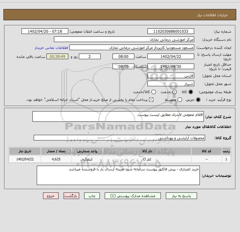 استعلام اقلام عمومی لاندری مطابق لیست پیوست, استعلام اقلام عمومی لاندری مطابق لیست پیوست