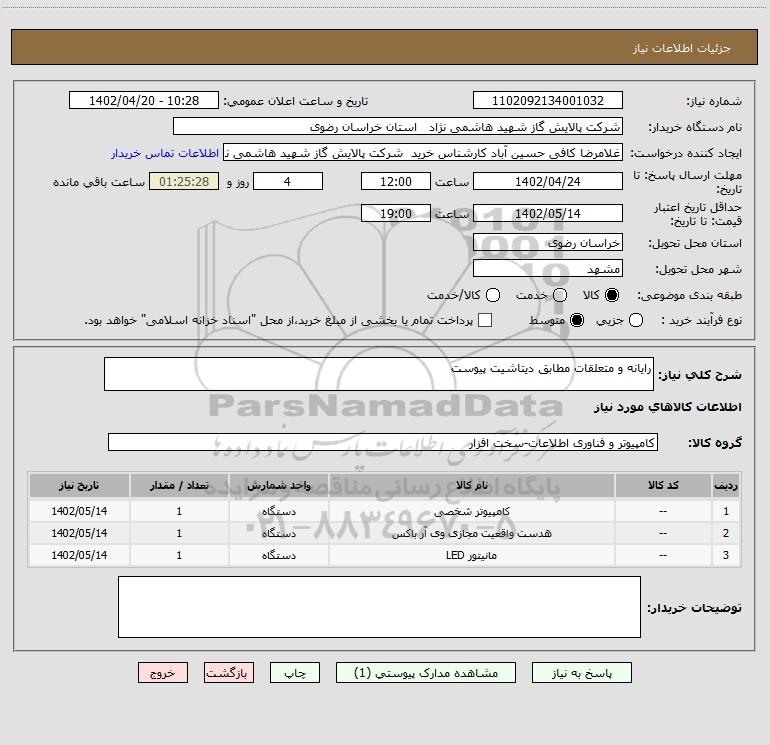 نام دستگاه خریدار:شرکت پالایش گاز شهید هاشمی نژاد استان خراسان رضوی