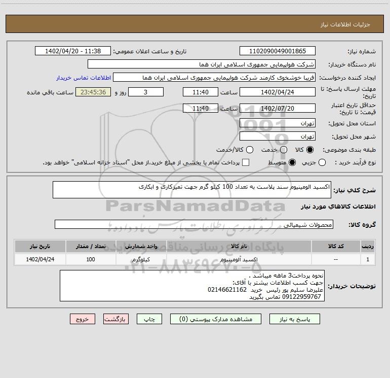 | 1 | -- | اکسید آلومینیوم | کیلوگرم | 100 | 1402/04/24 |