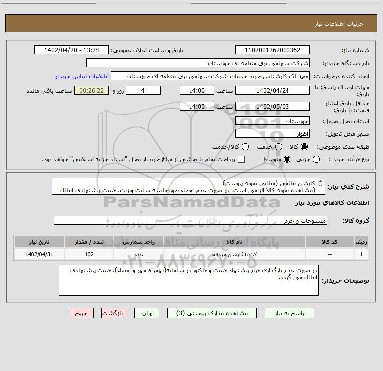 نام دستگاه خریدار:شرکت سهامی برق منطقه ای خوزستان