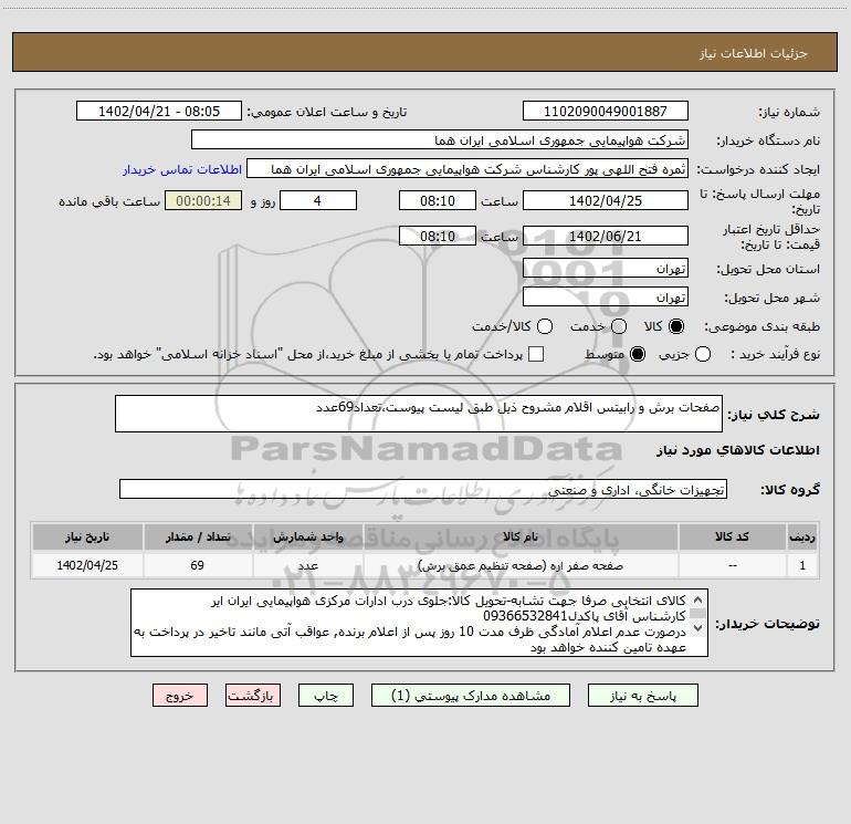 نام دستگاه خریدار:شرکت هواپیمایی جمهوری اسلامی ایران هما
