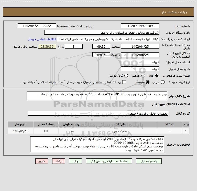 نام دستگاه خریدار:شرکت هواپیمایی جمهوری اسلامی ایران هما