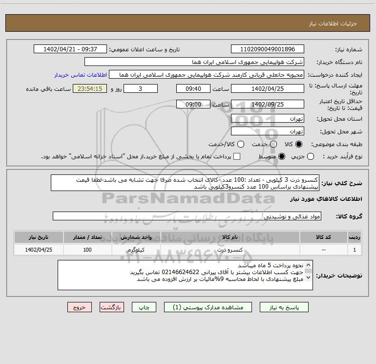 | 1 | -- | کنسرو ذرت | کیلوگرم | 100 | 1402/04/25 |