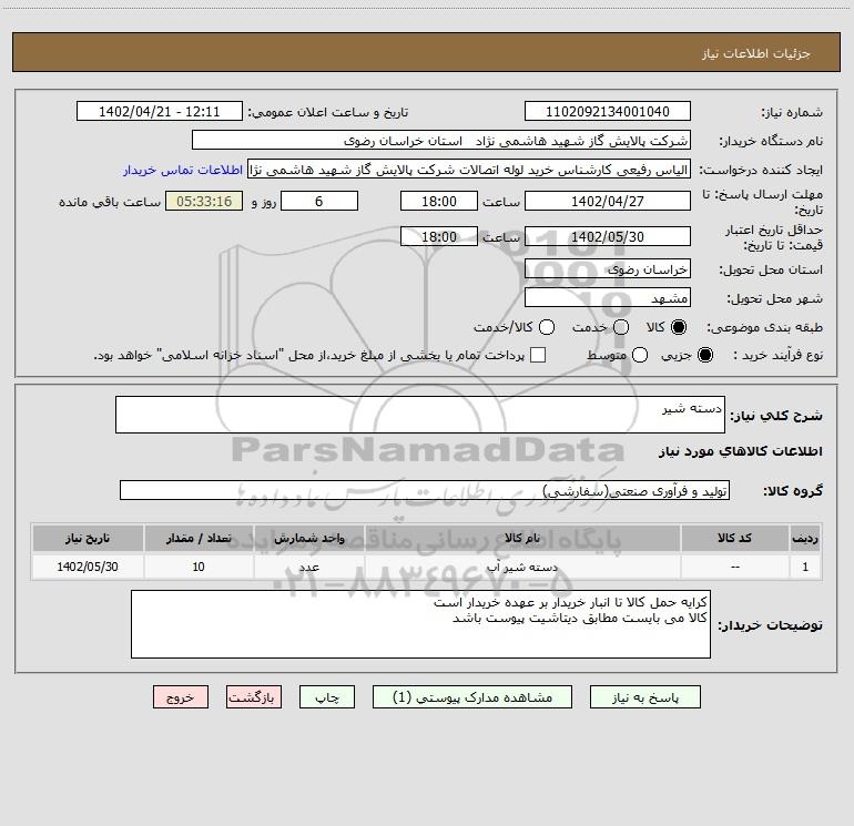 نام دستگاه خریدار:شرکت پالایش گاز شهید هاشمی نژاد استان خراسان رضوی