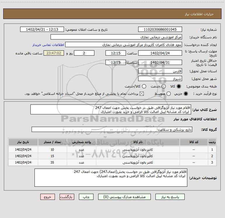 نام دستگاه خریدار:مرکز اموزشی درمانی نمازی