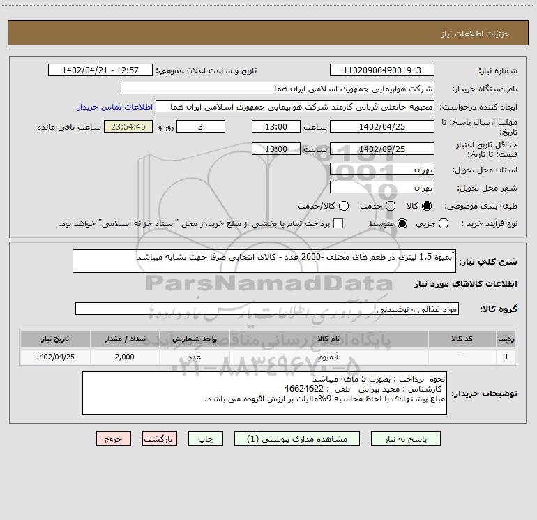 شرح کلی نیاز: آبمیوه 1.5 لیتری در طعم های مختلف -2000 عدد - کالای انتخابی صرفا جهت تشابه میباشد