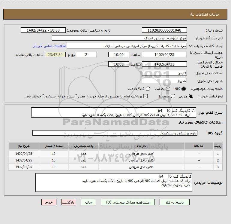| 3 | -- | کاتتر داخل عروقی | عدد | 10 | 1402/04/25 |