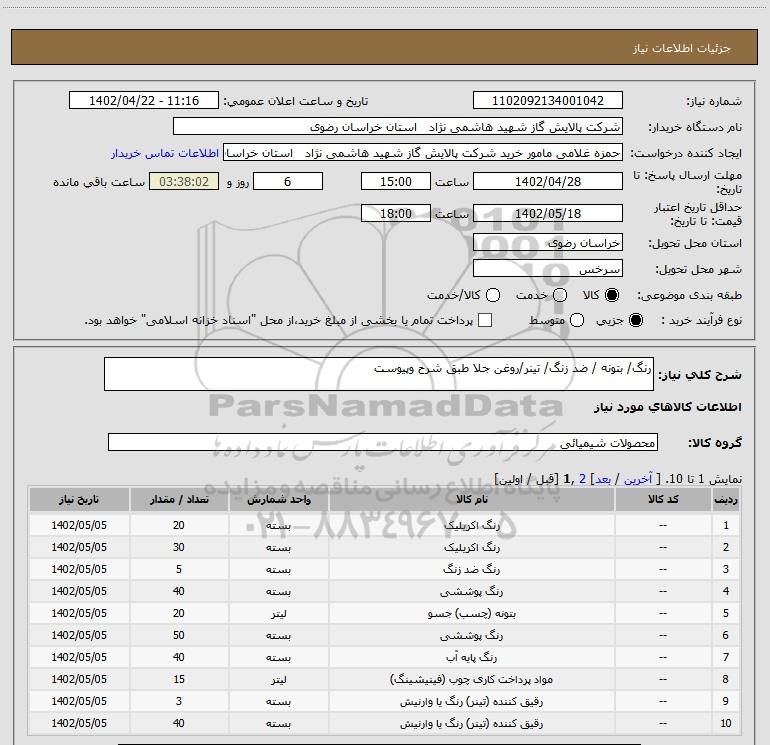 نام دستگاه خریدار:شرکت پالایش گاز شهید هاشمی نژاد استان خراسان رضوی