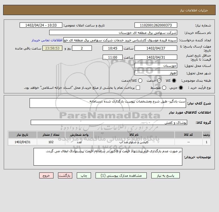 نام دستگاه خریدار:شرکت سهامی برق منطقه ای خوزستان