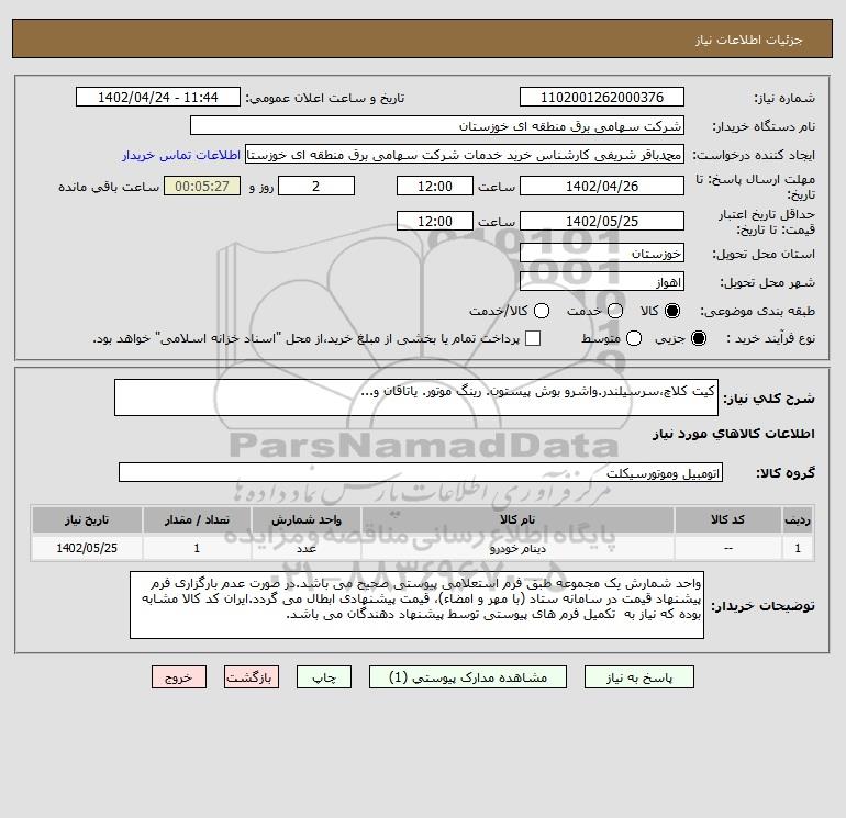 شرح کلی نیاز: کیت کلاچ،سرسیلندر.واشرو بوش پیستون. رینگ موتور. یاتاقان و...