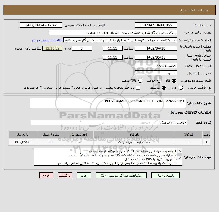 شرح کلی نیاز: PULSE AMPLIFIER COMPLETE / P/N EV245623/58