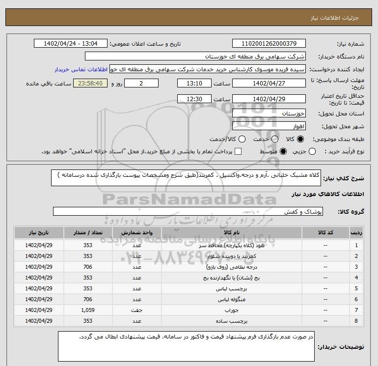 نام دستگاه خریدار:شرکت سهامی برق منطقه ای خوزستان