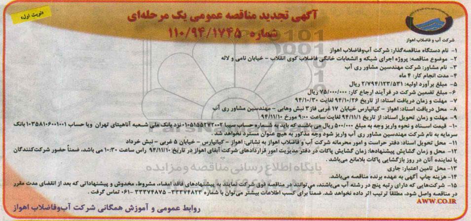 1- نام دستگاه مناقصه گزار: شرکت آب و فاضلاب اهواز