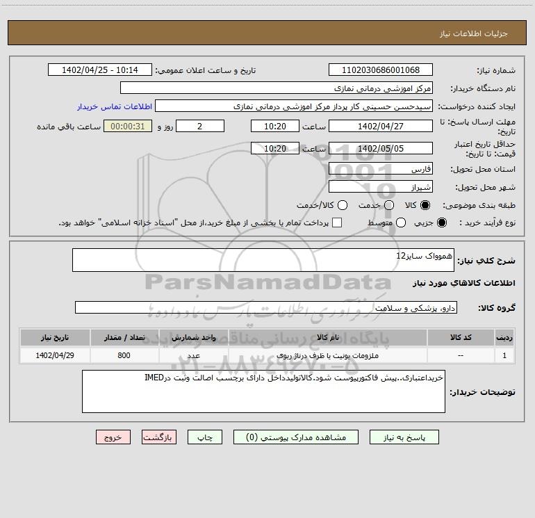 نام دستگاه خریدار:مرکز اموزشی درمانی نمازی