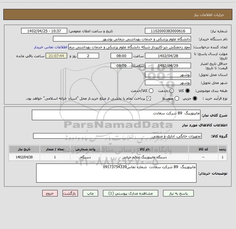 شرح کلی نیاز: مانیتورینگ B9 شرکت سعادت