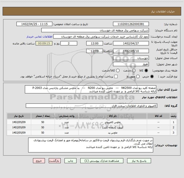 نام دستگاه خریدار:شرکت سهامی برق منطقه ای خوزستان
