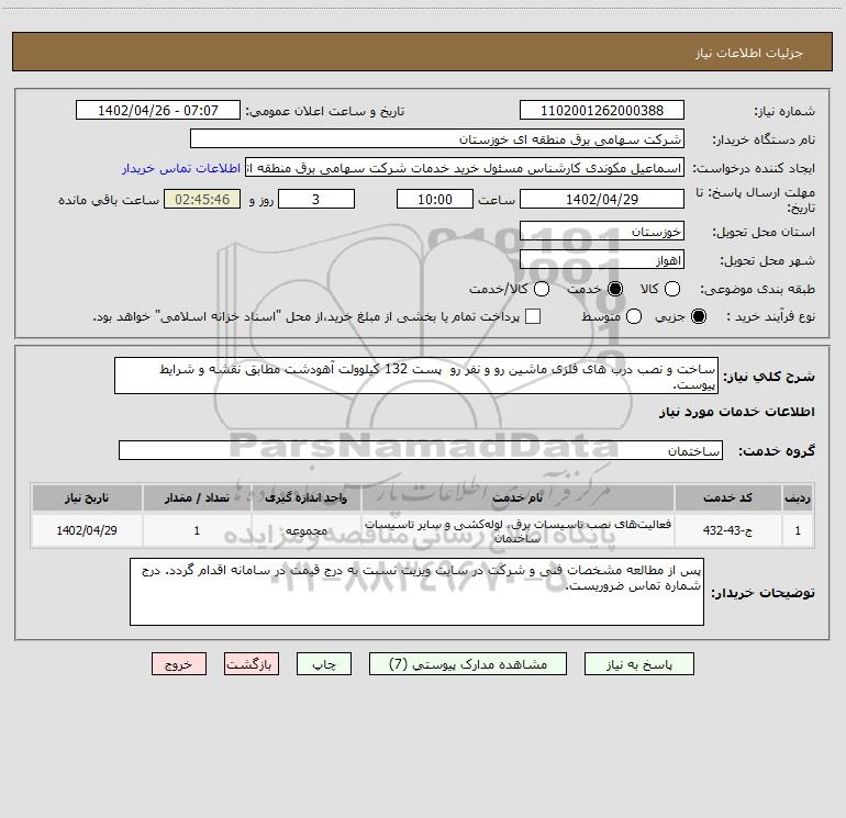 استعلام ساخت و نصب درب های فلزی ماشین رو و نفر رو پست 132 کیلوولت آهودشت مطابق نقشه و شرایط پیوست. ؟