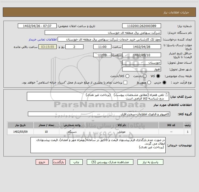 نام دستگاه خریدار:شرکت سهامی برق منطقه ای خوزستان
