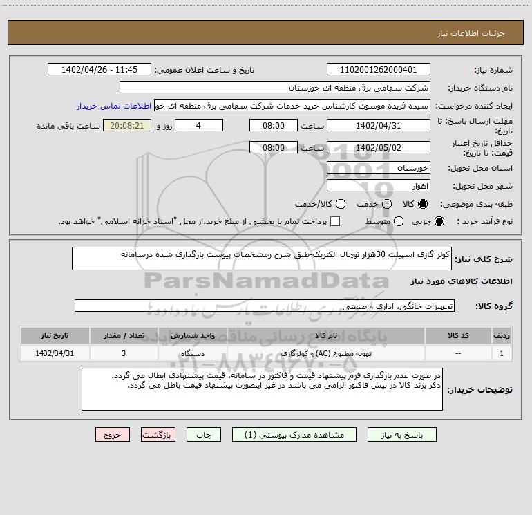 نام دستگاه خریدار:شرکت سهامی برق منطقه ای خوزستان