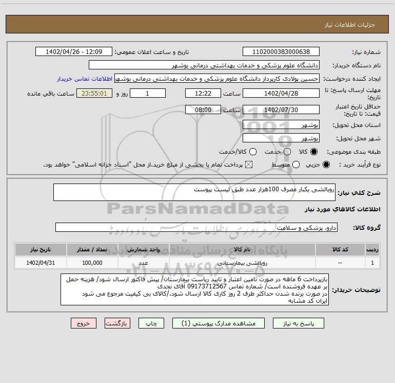 شرح کلی نیاز: روبالشی یکبار مصرف 100هزار عدد طبق لیست پیوست
