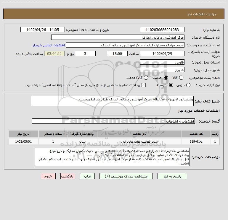 شرح کلی نیاز: پشتیبانی تجهیزات مخابراتی مرکز آموزشی درمانی نمازی طبق شرایط پیوست