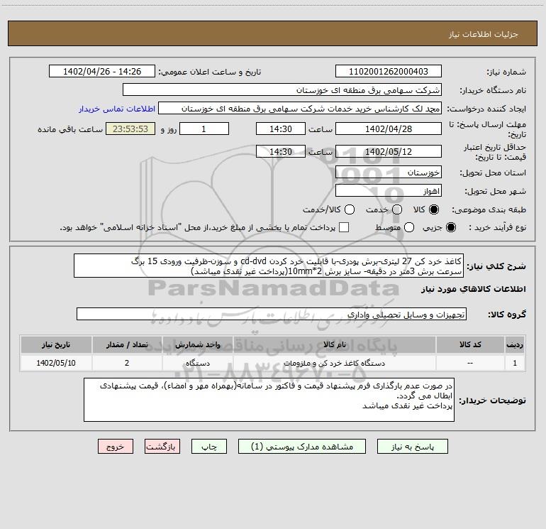 نام دستگاه خریدار:شرکت سهامی برق منطقه ای خوزستان