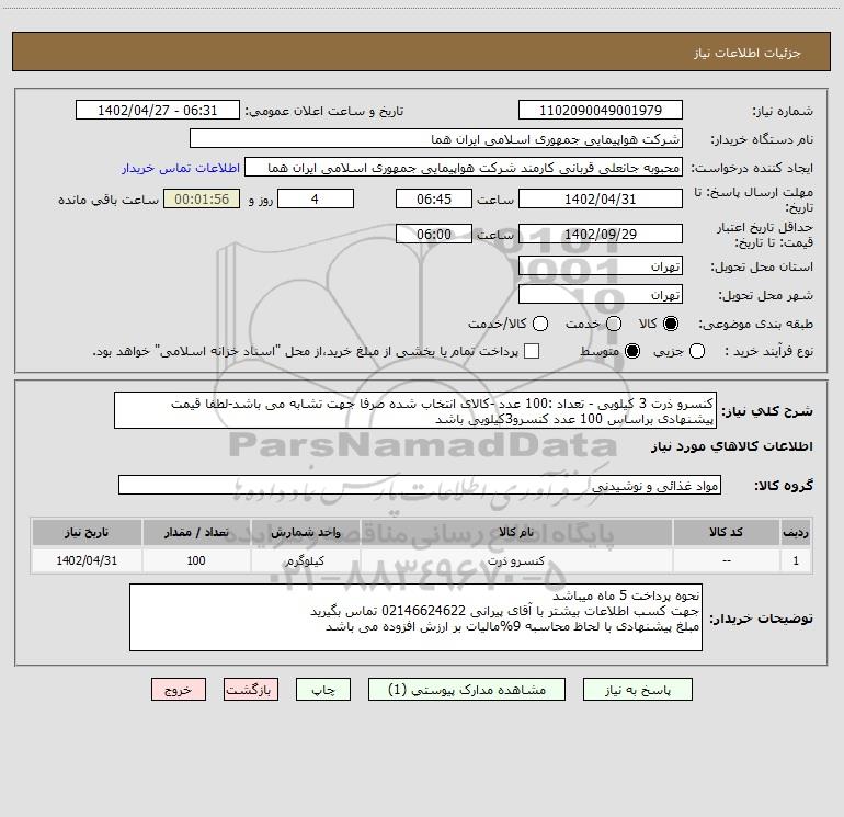 1 -- کنسرو ذرت کیلوگرم 100 1402/04/31