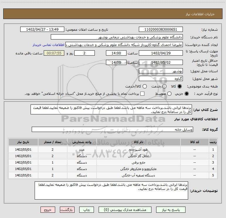 نام دستگاه خریدار:دانشگاه علوم پزشکی و خدمات بهداشتی درمانی بوشهر