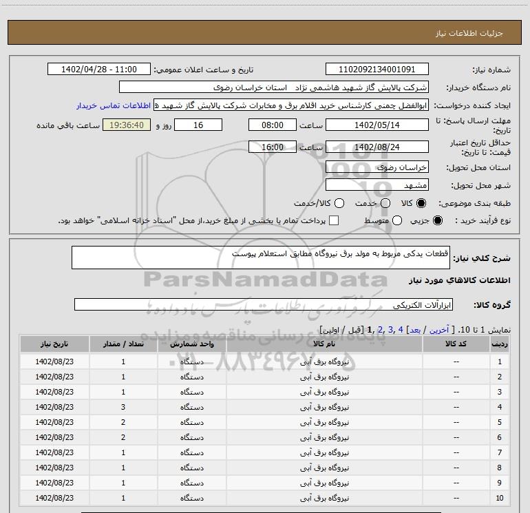 نام دستگاه خریدار:شرکت پالایش گاز شهید هاشمی نژاد استان خراسان رضوی