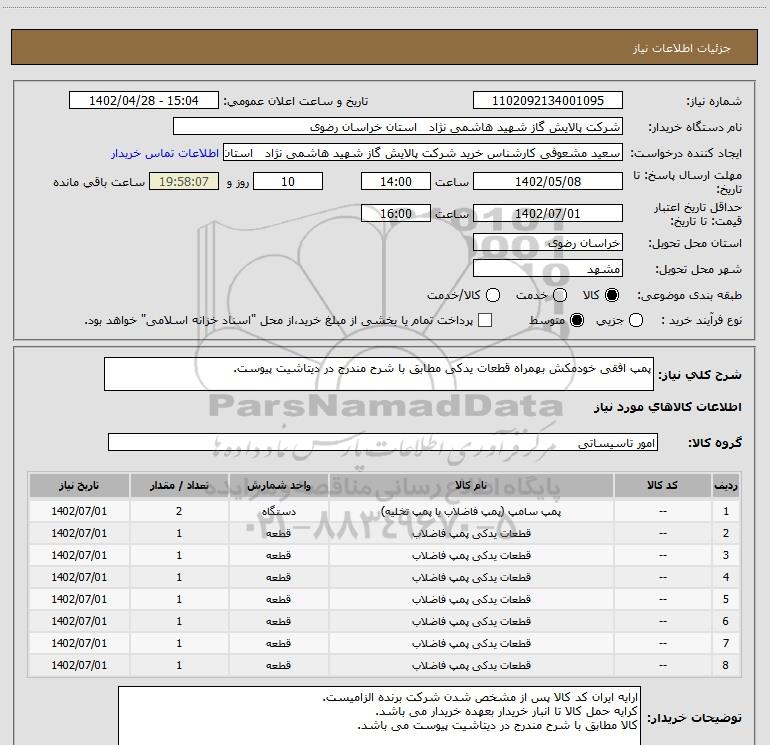 نام دستگاه خریدار:شرکت پالایش گاز شهید هاشمی نژاد استان خراسان رضوی