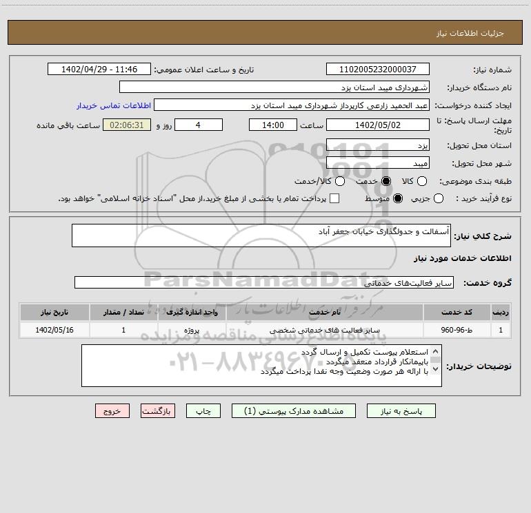 شرح کلی نیاز: آسفالت و جدولگذاری خیابان جعفر آباد