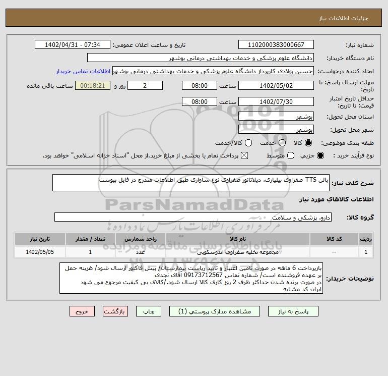 شرح کلی نیاز: بالن TTS صفراوی بیلیاری، دیلاتاتور صفراوی نوع ساواری طبق اطلاعات مندرج در فایل پیوست