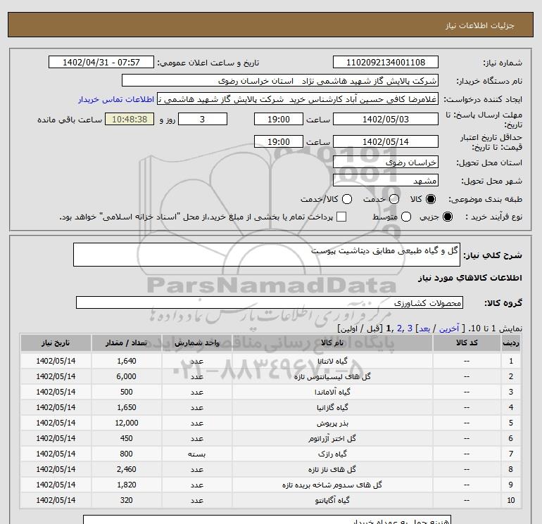 استعلام گل و گیاه طبیعی مطابق دیتاشیت پیوست, استعلام گل و گیاه طبیعی مطابق دیتاشیت پیوست